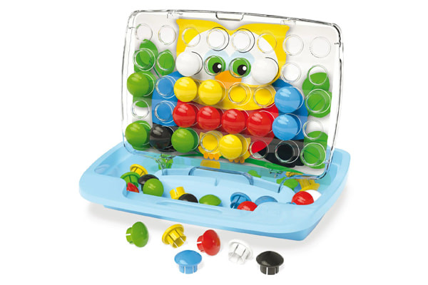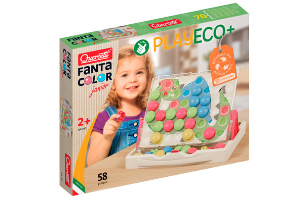 In deze kleurrijke FantaColor set vindt u de leukste mozaïeken! Er zitten 8 kaarten in die achter het geperforeerde bord worden geplaatst. In de gaten kunnen de pinnen worden gestoken die moeten corresponderen met de kleur van het plaatje. Er worden 40 grote pinnen meegeleverd met een diameter van 32 mm in 6 verschillende kleuren. Geschikt voor kinderen vanaf 2 jaar.
