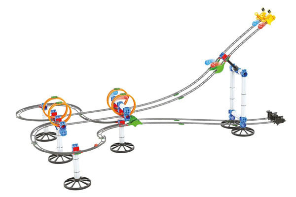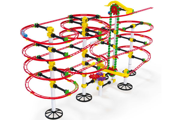 Bijna 6 meter aan knikkerbaan: dat is de Skyrail Evolution van Quercetti. De set bestaat uit 174 onderdelen, waaronder knikkers. Een lanceer-raket vuurt de knikkers met een waanzinnige snelheid af. En een soort hamer geeft ze tussendoor nog een extra zetje. Laat de fantasie de vrije loop en uw kind kan er van alles mee bouwen. Geschikt voor kids vanaf 7 jaar.